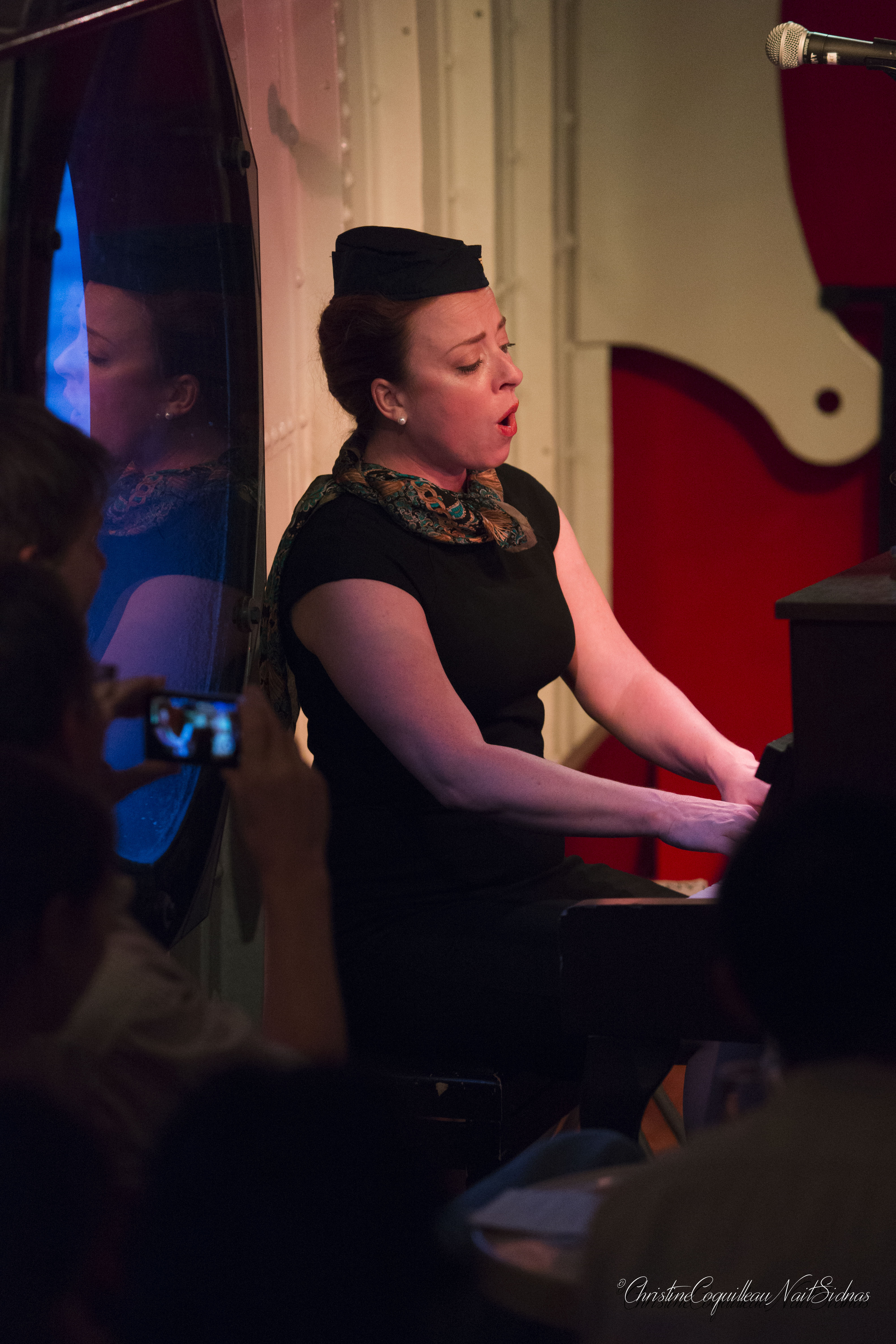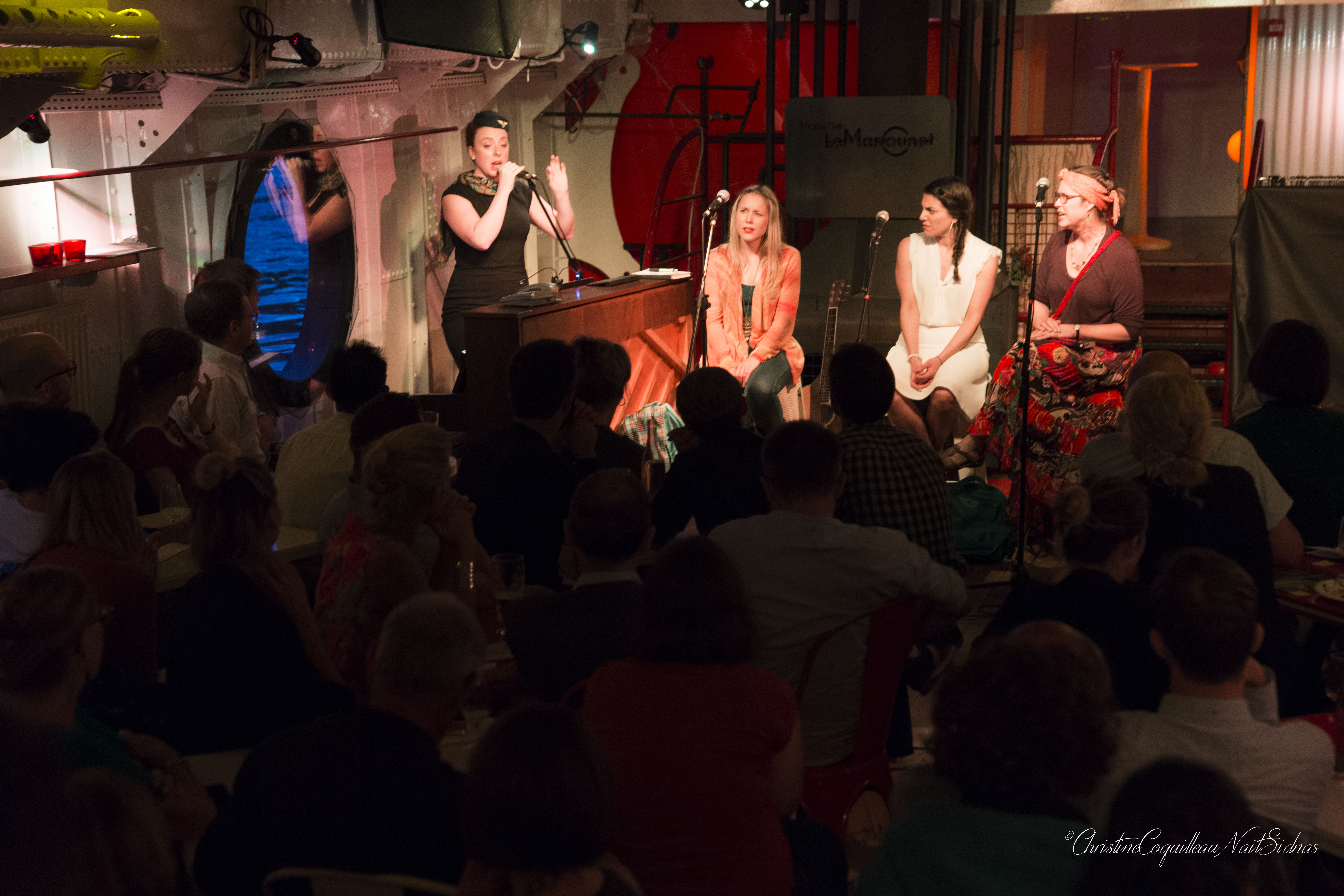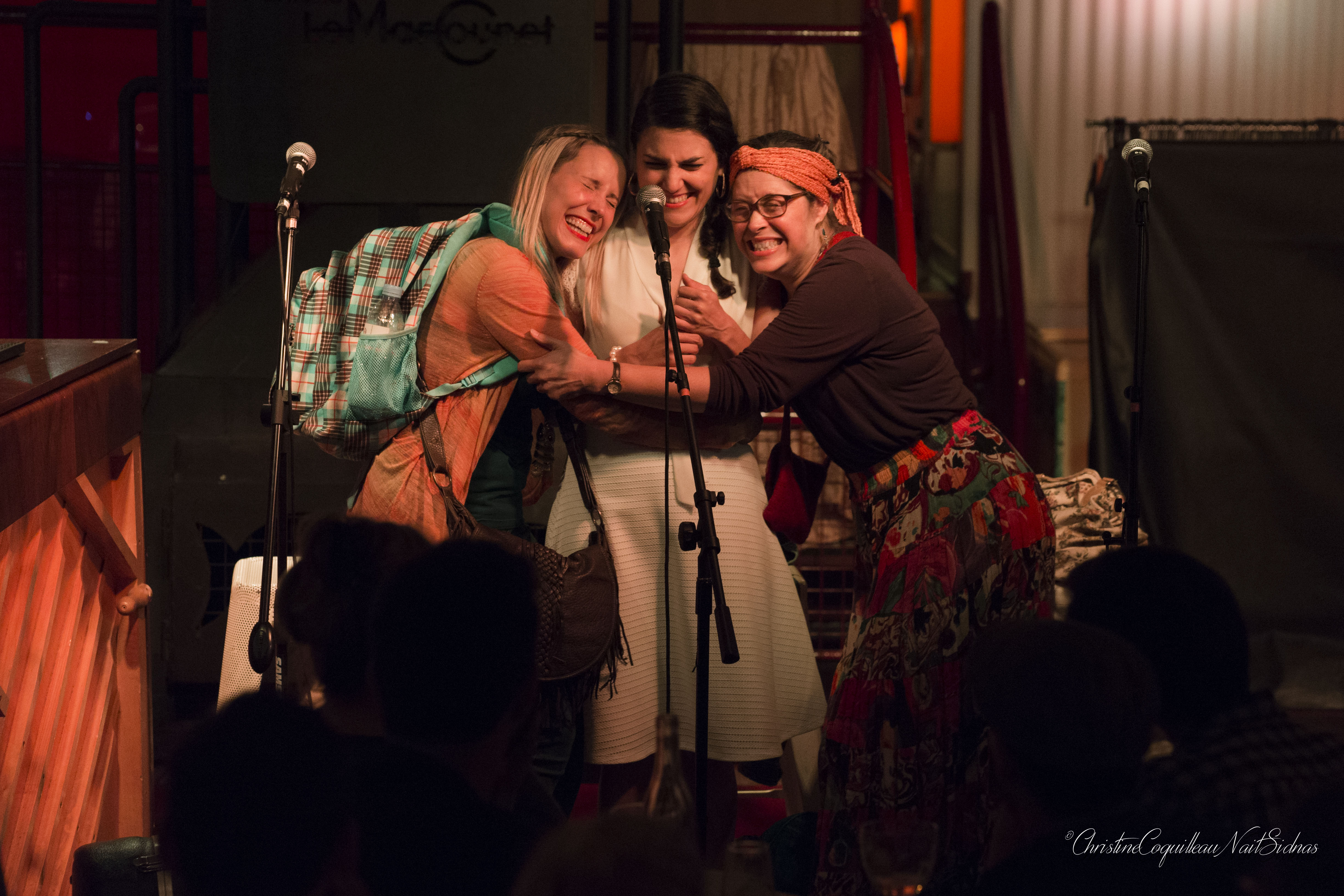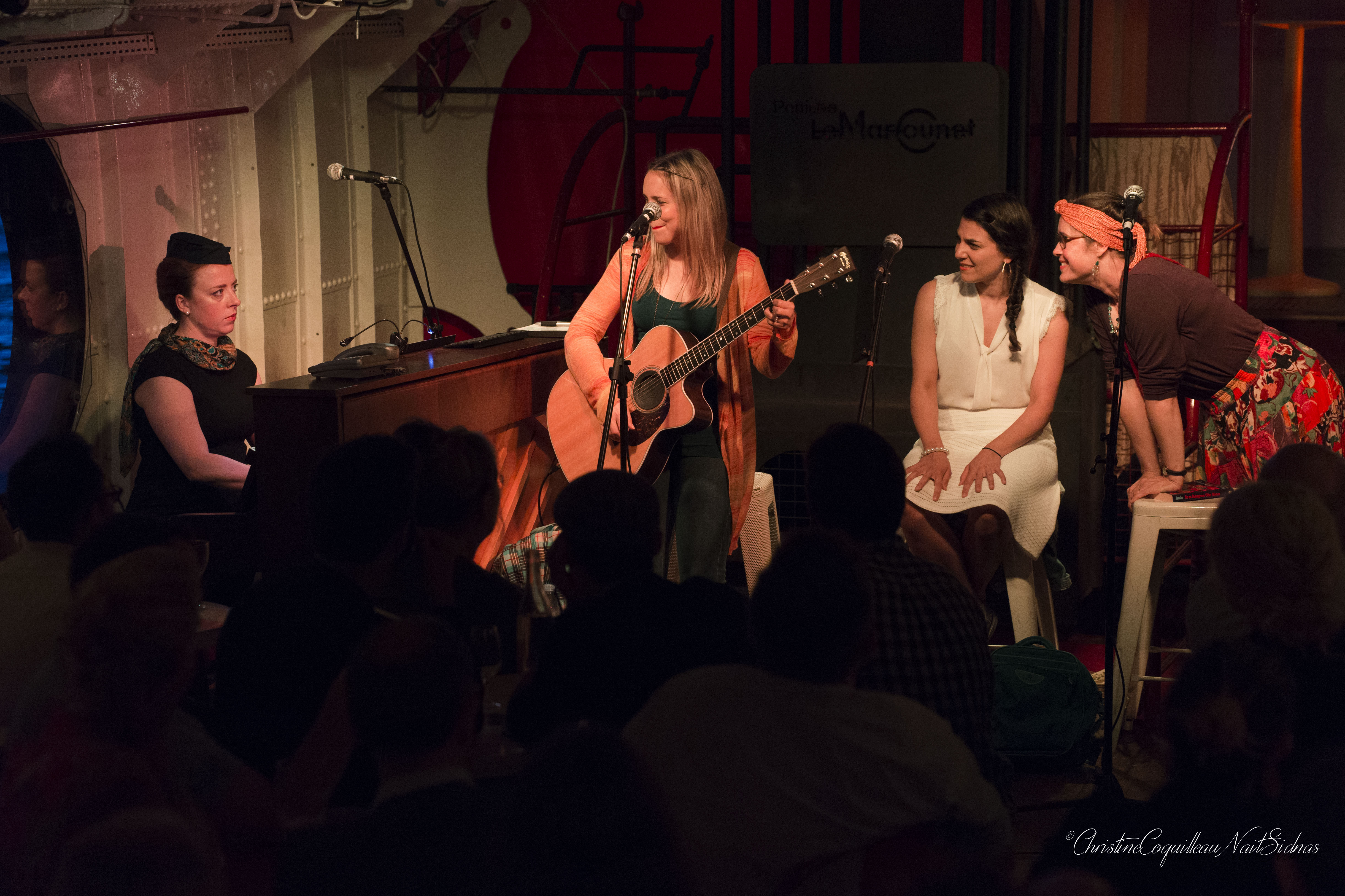 The story takes place in present day in an airport. This meeting place of grand departures and anticipated returns, a place where we can lose our way or begin a great escape, provides a meeting place for four women, each coming and going on their own journey. The delineation between French and English blurred as the women interact, we are asked to consider how we can find our own idea of “home” in this transient, jet-setting world. Accompanied by piano and guitar, scenes blend into songs as we depart on a journey through the eyes of the youngest woman, a traveler who is running away on the day of her wedding.